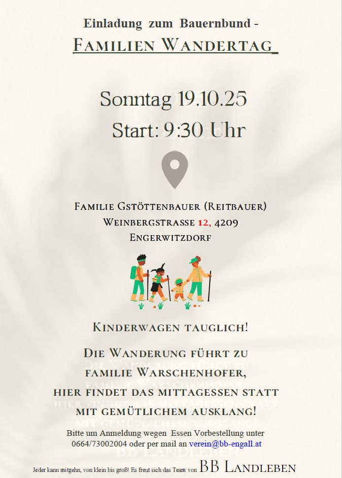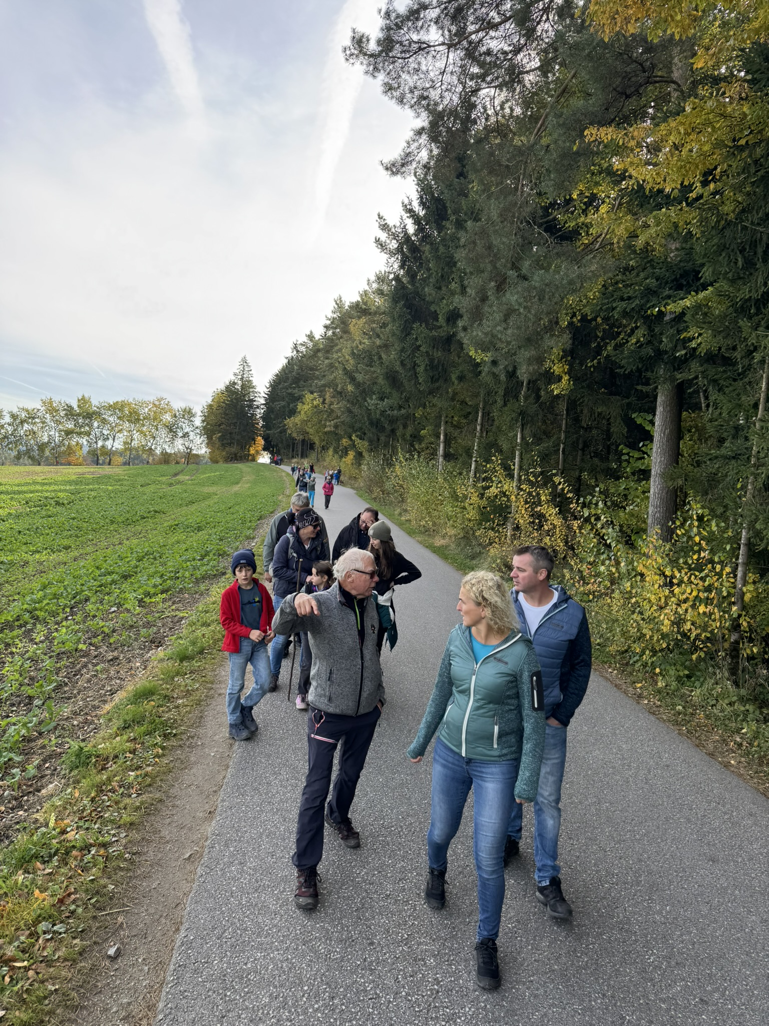 Bei herrlichem Herbstwetter fand am gestrigen Sonntag die Familienwanderung statt. Rund 30 Erwachsene und 15 Kinder machten sich gemeinsam auf den Weg vom Gemeindegebiet Engerwitzdorf über ein Stück Unterweitersdorf und Alberndorf nach Gallneukirchen am Punzenberg – eine abwechslungsreiche Route mit vielen spannenden Stationen und interessanten Einblicken in die Geschichte unserer Region.